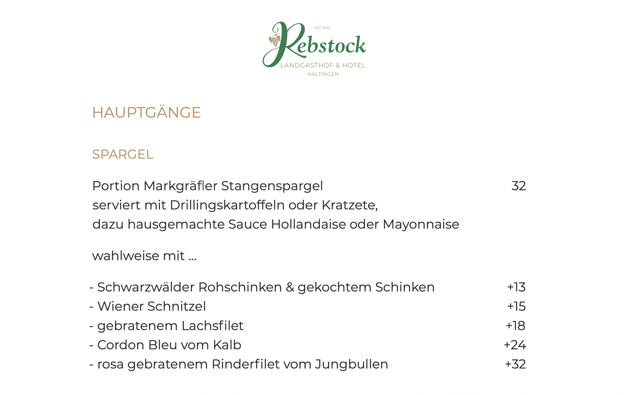 Dazu passt ein Glas Riesling vom Weingut Heinemann aus Ehrenkirchen. Eine Reservierung wird empfohlen.Wir freuen uns auf die Spargelzeit. Ihr Rebstock-Team