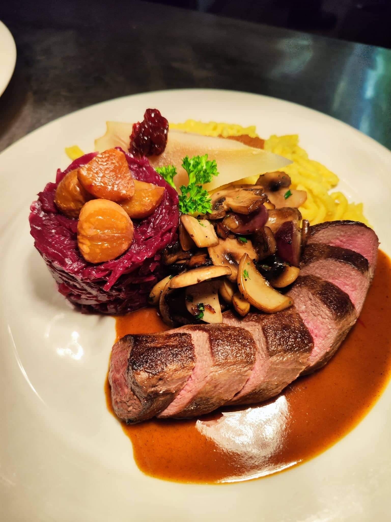 Genießen Sie in stimmungsvoller Atmosphäre ein festliches Menü oder ein klassisches Weihnachtsessen mit regionalem Bezug. Gerne unterstützen wir Sie bei der Menüauswahl und Planung, ganz nach Ihren Vorstellungen – von der Vorspeise bis zum Dessert.